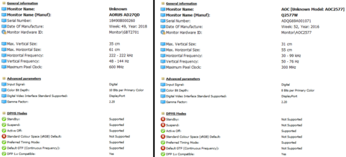 I just installed HWiNFO and noticed something about my two displays: It appears my older display (AOC Q2577PWQ, built late 2016) doesn't support the Standby nor Suspend features of the DPMS specification. Whereas my newer one (Gigabyte AD27QD, built late 2018) does! I imagine, if both supported both features, I wouldn't get this window-shifting each time the system timed the displays into sleep mode.2 points -