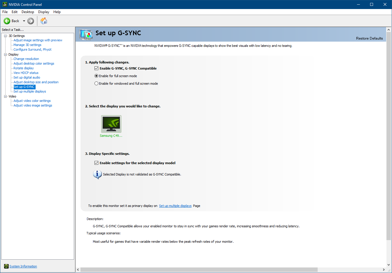 I have the same exact problem with my setup, it's a Nvidia 2070 RTX Super with a CRG90 (ultrawide) FreeSync screen. If I enable G-SYNC I have to ensure that it is set to full screen mode, because Windowed mode causes flickering on my screen. Without knowing your actual hardware setup, I can only tell you what fixed my flickering issues. You might also need to look into supported refresh modes for your monitor, setting it lower or higher may eliminate the flickering too. And my last suggestion is to look how you are powering the screen, is it on a powerstrip? Maybe ensure that the screen is in the first socket (nearest the power cable from the strip to the wall) if you have it in a strip, because other powered devices may be affecting the screen too.1 point -