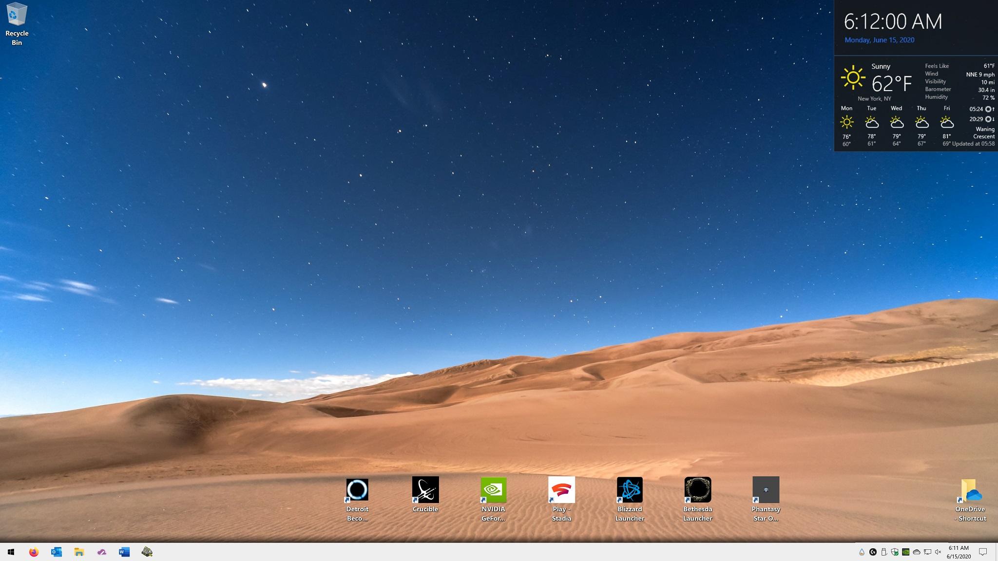 Windows 10 64x ver. 2004 Light Theme Upper right - Rainmeter: https://www.rainmeter.net/ Win10 Widget Theme: https://www.deviantart.com/tjmarkham/art/Win10-Widgets-619765834 Win10 Widget Weather Patch: https://www.deviantart.com/eclectic-tech/art/Win10-Weather-Patch-V3-b-780236969 Taskbar Shadow - TB Shadow by Sweatyfish: https://www.deviantart.com/sweatyfish/art/Taskbar-Drop-Shadow-102794087 Wallpaper - Colorado Desert Skies by Jared Evans: https://unsplash.com/photos/Wwg1TzCuV9E1 point -