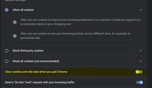 Yea, you said "allow all cookies" works ... so allow all cookies and then tick that slider so cookies will be deleted when you close Chrome. I'm willing to wager that it the bank is using some other domain to handle financial transactions (maybe their parent corp Randolph Bancorp) ... but I'm not going to open an account to find out for sure. 🙂1 point -