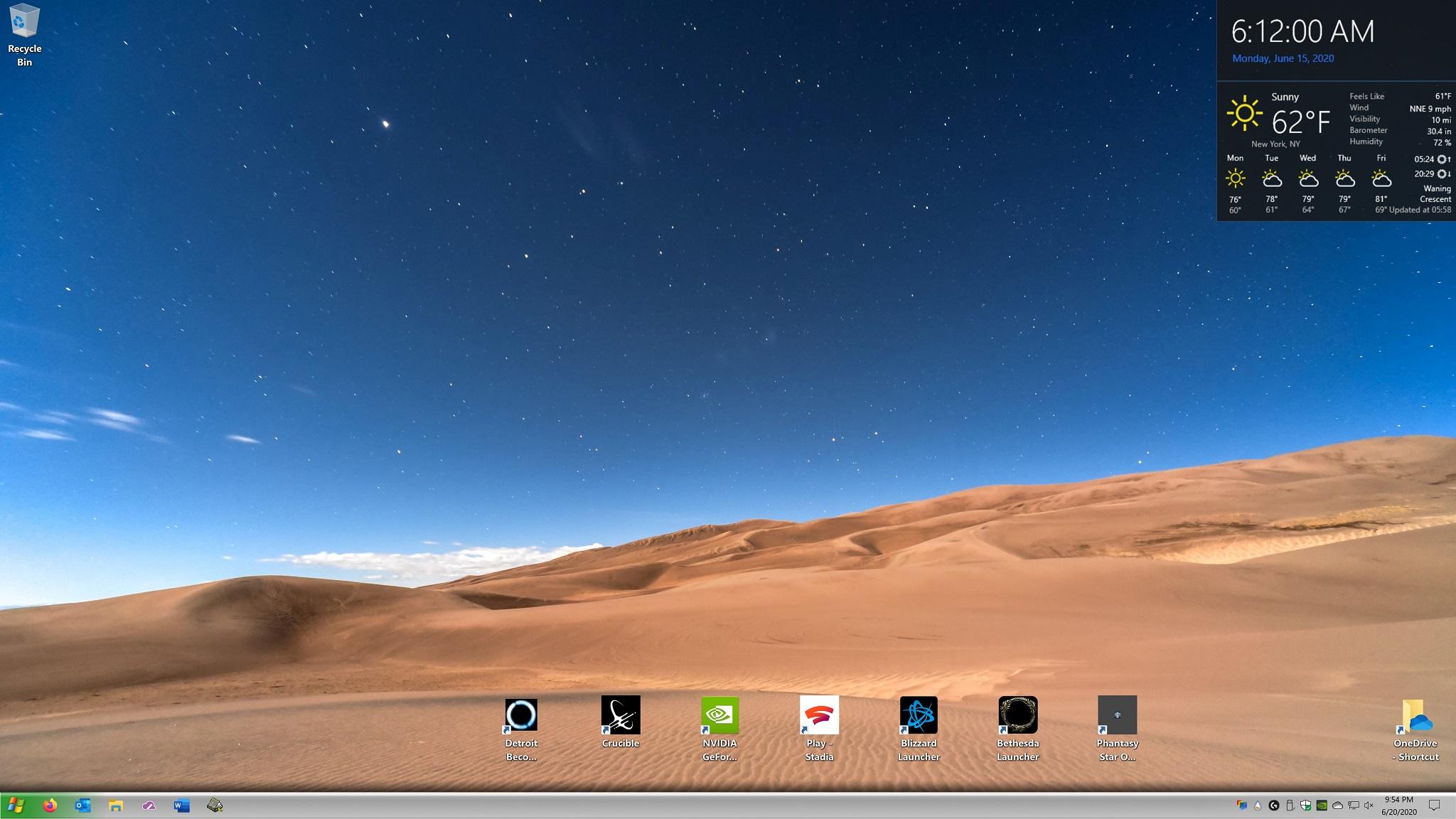UPDATED - Now with Stardock Curtains! Windows 10 64x ver. 2004 Stardock Curtains: https://www.stardock.com/products/curtains/ Luna theme with custom color set to try to mimic silver Upper right - Rainmeter: https://www.rainmeter.net/ Win10 Widget Theme: https://www.deviantart.com/tjmarkham/art/Win10-Widgets-619765834 Win10 Widget Weather Patch: https://www.deviantart.com/eclectic-tech/art/Win10-Weather-Patch-V3-b-780236969 Taskbar Shadow - TB Shadow by Sweatyfish: https://www.deviantart.com/sweatyfish/art/Taskbar-Drop-Shadow-102794087 Wallpaper - Colorado Desert Skies by Jared Evans: https://unsplash.com/photos/Wwg1TzCuV9E2 points -