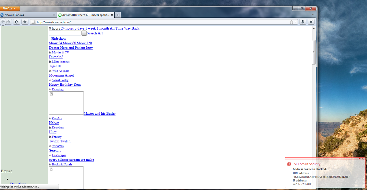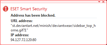 I'm still trying to access deviantart sincer 3-4 days ago but I receive this type of message from eset smart security 4(latest updates). There's something wrong only for me or it's a general security issue?