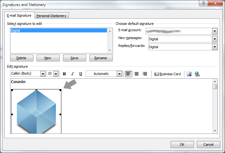 Trying to edit my sig. but when I try to attach a symbol/logo/picture to my sig. it automatically scale it to become larger & sure looses quality. The main problem is that I cannot resize it in a way or another; simply doen't respond to click&drag on corners...tried to resize on ps my avatar but it is scaled to an ugly undefined dimension. Is there a standard size for logo's on outlook/e-mail sigs or?