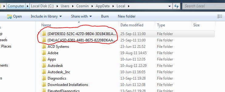 Since 1week or so on C:\Users\Cosmin\AppData\Local some sort of folders appear with no content (0 bytes) which are named such as {D41ACA5D-6361-4481-8675-8220BD6AA82E}. I wish to find out to what software are related to cause their number increase misteriously. I suspect Autodesk Inventor which I use often or Outlook..