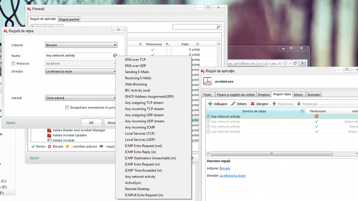 Hy. I wish to restrict access to internet for Acrobat 10 from Kaspersky Internet Security 2012 but cannot find the specific rule for this.. tried any network activity but no luck.. any suggestion is welcome! :shifty: