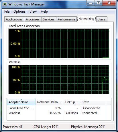 Roger H. Veteran Posted November 22, 2011 Veteran Share Posted November 22, 2011 (edited) Your reported seems quite HIGH to me.. Can you show actual test of this with say iperf or netio, or even a simple file copy with robocopy. To be honest I fhind your 18MBps number a bit unrealistic -- your talking 144Mbps there -- and I really just don't buy that. Take a look here http://www.smallnetb.../66-5-ghz-up-40 The benchmarks there don't show anything close to 18MBps the 18MB/s is for the 5Ghz radio. I have the Linksys e4200 and Intel 6300 (450Mbps link rate) and i get 25-30MB/s over 5Ghz WLAN at about 10M. I'll take some screenshots later when I get home. This is to a 1Gbps WHS 2011 box to my Laptop (in sig). Oddly enough, upstream is higher than downstream for me. I've always wondered about smallnetbuilder too because they say 84Mbps max speeds over 5Ghz or something. Switched it from "Average" to Maximum and it's still crappy. Granted i'm not doing iPerf but just testing from Windows 7/8 Copy dialogbox and task manager showing ~50% of 450Mbps. So I dunno, i know I defintiely get faster speeds than they do however. Edit: Screenshots Edited November 22, 2011 by SHoTTa35 Added screenshots Link to comment Share on other sites More sharing options...