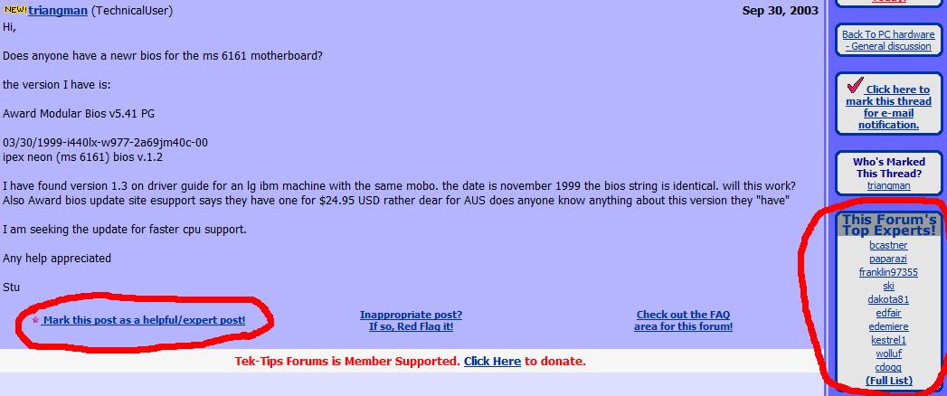 Zip Posted October 5, 2003 Share Posted October 5, 2003 i've noticed some other boards have a feature which allows users to vote if they found someones post useful (like tek-tips). does invision board have a feature like this that can be enabled? i think it might help neowin to fight the useless post group who see post count as a form of supremacy. should it not be on how helpful you are on the boards? i just thought it might be an incentive to make people even more helpful than they already are and reward them (with praise - lol) anyways, just a suggestion Tyler oh n btw, i do think neowin is very helpful. but things can always be improved - this motto ring any bells OC'ers? /edit - spelling Link to comment Share on other sites More sharing options...
