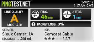 Andre S. Veteran Posted March 8, 2012 Author Veteran Share Posted March 8, 2012 Yes the server is automatically selected to be the one with lowest ping and they're all a few kilometers away from my home. Upload speed is max ~70KB/s, so following your suggestion I've lowered max upload speed to 17KB/s. It does make a big difference, now I get mostly good results on speedtest.net. Damn I didn't think using half of my upload bandwith was killing my connection so much. Even without uTorrent, my ping times are crap indeed. A ping on facebook.com just took 142ms on average. Twitter: 138ms. Google: 90ms. Sometimes they improve temporarily when I restart the modem, but they never get much better than those results. Link to comment Share on other sites More sharing options...