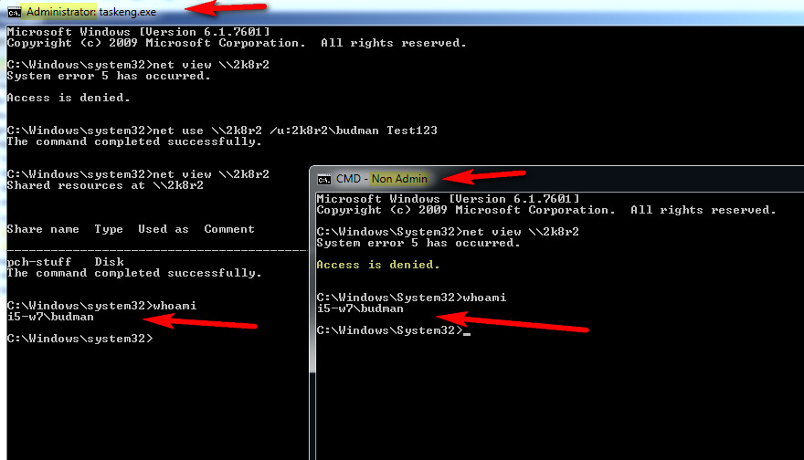 So here I auth inside a elevated prompt and I can view the shares, but in non admin prompt same user, access denied