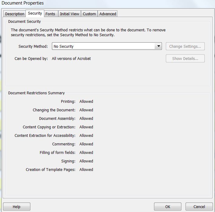 standard and pro the security settings say have at it. if opened in reader it has the orginial restricitions. i tried acrobat reader 7,8,9.