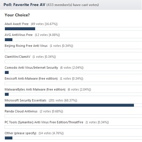 MaPa Posted April 17, 2012 Author Share Posted April 17, 2012 ok, so which one will be better: MSE, Avast or Comodo ? Link to comment Share on other sites More sharing options...