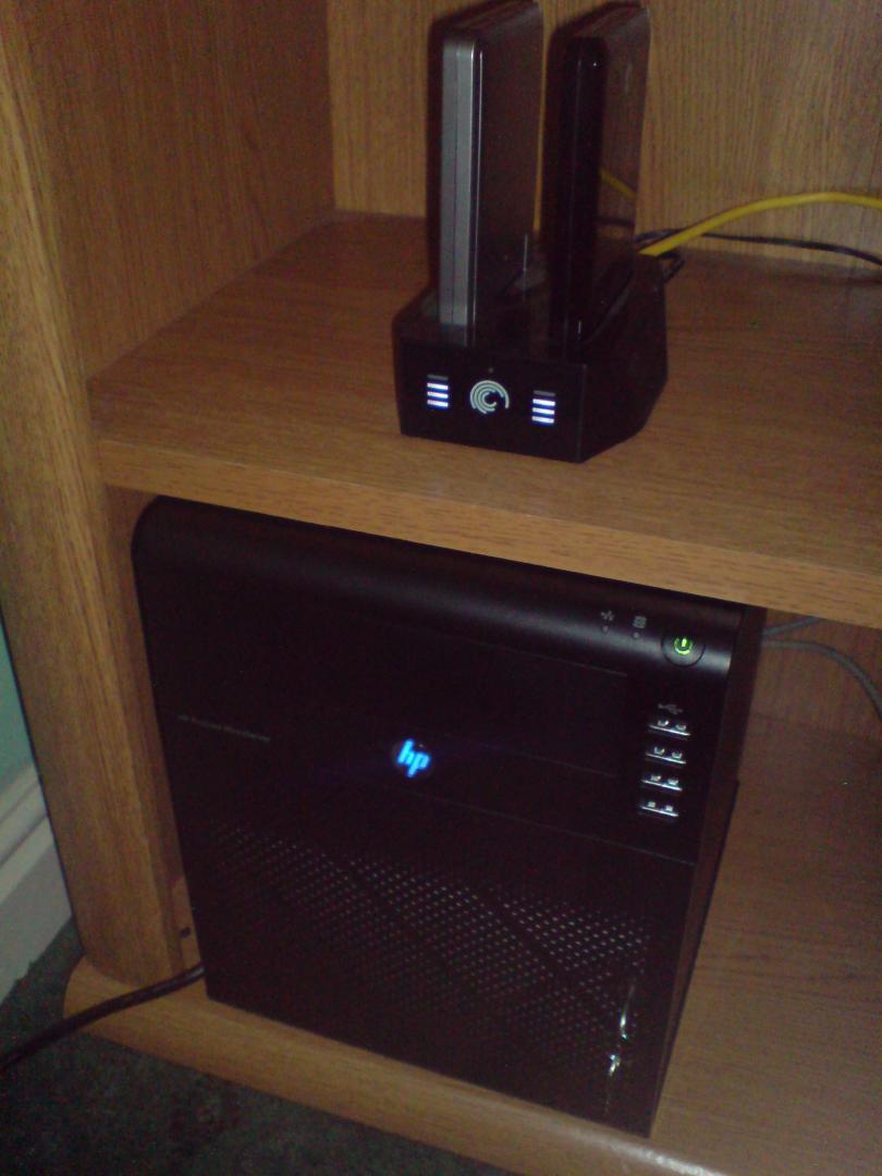 +John Teacake MVC Posted September 7, 2012 Author MVC Share Posted September 7, 2012 Back to more modest hardware I think... Old server on the top - a Seagate GoFlex Net running Arch Linux ARM and underneath is it's replacement - HP ProLiant N40L Microserver running WHS2011. Not yet quite finished setting up the N40L, but getting there. And I couldn't really turn say no - ?116 from Amazon after ?100 cash back, which I've just got my confirmation email for. I am sure my Microserver doesnt have 4 USB ports :-( I will check though now lol Link to comment Share on other sites More sharing options...