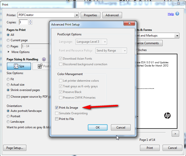 0 kInG aLeXo Posted June 30, 2012 Author Share Posted June 30, 2012 Ok -- I use pdfcreator, and if you go to properties and say print to image.. This sure seems to be what you want. It makes the pdf non searchable, and 5x the size in my 14 page pdf I tested with. But I think this is what your looking for So just print your pdf to pdf again. Here is my test.pdf of the esxi getting started guide and the original guide if you want to see if this is what you want. test.pdf 5.0_U1_Mar_2012_ESXi_Getting_Started_Guide_616896-006.pdf The flaw in your logic, is the is not going to be as good since its a picture not actual rendering of the fonts. You can not search the text, because its not text. You can not have bookmarks to specific text, its just a picture of the page, etc. Really defeats the whole feature set of pdf. Thanks a lot. Downloading and will try pdfcreator now. You are totally right, ASSUMING you do not find it incredibly annoying to wait for 5-10 seconds for each and every single page to load in a document you want to read fast/navigate fast till you find something interesting. It is a matter of trade off. I can not get all PDF features AND fast loading in the same time, so I made my choice that what I need most is fast page loading. If I need both then I would just open it on my PC. The rendering should be okay to read (as far as I can tell from djvu converted PDFs), and I can still bookmarks parts I want using the reader bookmarking tool. Link to comment Share on other sites More sharing options...