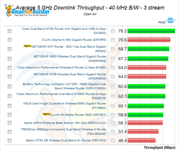 Another Canuck Posted July 5, 2012 Share Posted July 5, 2012 As much as I respect Tim at smallnetbuilder, I find his results are usually quite a bit lower then what is actually achievable. The fastest 5Ghz, 3 stream, 40Mhz downlink result he's ever recorded was 104.5Mbps (with a Linksys EA3500). Yet here I am, getting 144Mbps of throughput on a wireless system that is one floor down and two rooms away from my wireless router. Yes, throughput. Not link speed. I mean I have a file transfer currently running at ~18MB/s. I'm not breaking any LAN speed records here, but it's more than enough to allow me to happily stream full 1080p Blu-Ray rips (i.e. 20GB+ .mkv files) from my home server to my HTPC, without a hitch. This is with an Asus RT-N66U 450Mbps router and an Asus EA-N66 450Mbps bridge. Both are on stock firmware; no special tweaks. I simply took the time to set up both devices properly and positioned them well. I do agree with SHoTTa35's numbers. Basically, take the maximum speed listed on the router's box... and chop it in half. That is the most you will ever get out of it. With that said, a good 5Ghz, 3 stream 450Mbps setup (even 300Mbps, depending on your home layout) should allow you to saturate your 75Mbps Verizon internet service. Link to comment Share on other sites More sharing options...
