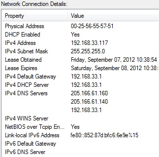 Your using 2 outside dns hosted by Cumberland Technologies International, and or the local router as dns. I would of said those are you isp dns servers, but they are allowing recursive queries from me.. So they are open to the public, odd for most isp dns. Either way, that is the info you wanted to see on a machine that was not working.. Then we could of known if was not getting an IP, you could of checked if it could ping its gateway, query dns, etc.