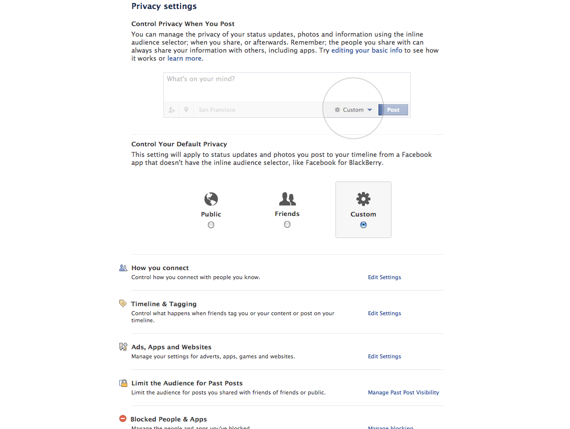 cooky560 Veteran Posted September 24, 2012 Veteran Share Posted September 24, 2012 Basically I don't want people knowing where I am all the time, but some of my friends who tag me photos add the location (perhaps automagically) and I'm tired of either reviewing or manually removing the location each time. Now before timeline it was really easy to control who could add your location from this screen: Now however since I've been forcibly upgraded to Timeline most of the privacy settings have gone, it now looks like this: None of these buttons have any controls for restricting who can post my location, does anyone know of a fix for this short of restricting everything on my timeline? Link to comment Share on other sites More sharing options...