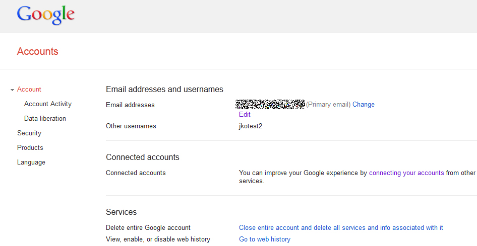 I have a Google account that I use for web history, analytics and webmaster tools. I sign into that account with my Hotmail emaill address. I am setting up a service that requires a gmail account; I do not have a gmail product on this account, so when I click on gmail, it shows: Your new address: jkotest2@gmail.com. I do not want to use jkotest2, I'm not sure how to change this. Any advice?