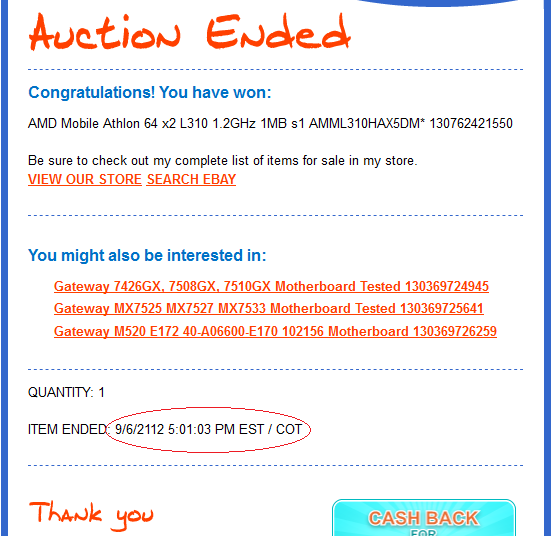 xpablo Posted November 5, 2012 Share Posted November 5, 2012 Pretty sad, that technology hasn't evolved enough in the next 100 years, that you still get the same crappy auction ended message in the future. You would think you could get some hologram of some, sexy model of the current time telling you you have won the auction. Not too mention the vintage processor and motherboards. In 2112 you would think the future holds better technology. Link to comment Share on other sites More sharing options...