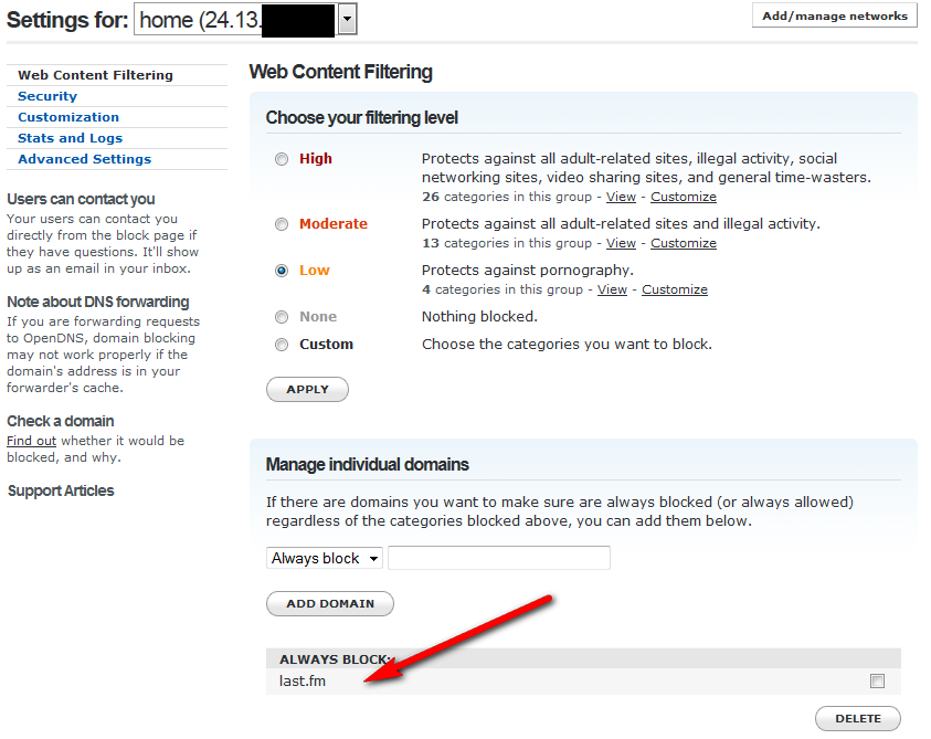 Koshur Posted November 12, 2012 Author Share Posted November 12, 2012 Hi Ok. here is what ive got so far. Signed up for opendns (coz dydns is not free) Added my network Enabled updation of my dynamic ip. installed their ip updation client for win. choose the settings on moderate level filtering Updated my router to use their DNS servers Once i apply these settings on my opendns dashboard, it says it would take 3 min to push all settings across the servers, But guess what i am still able to open porn sites on my client. !! :( Also my router has an option for dydns account but not for opendns... I am not sure what i am missing on this one. Please see the screenshots Link to comment Share on other sites More sharing options...