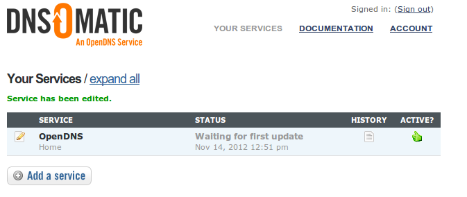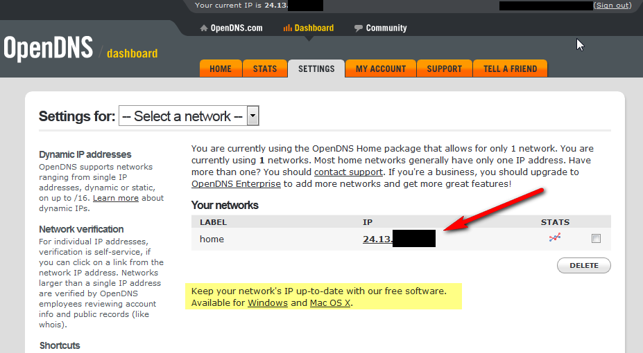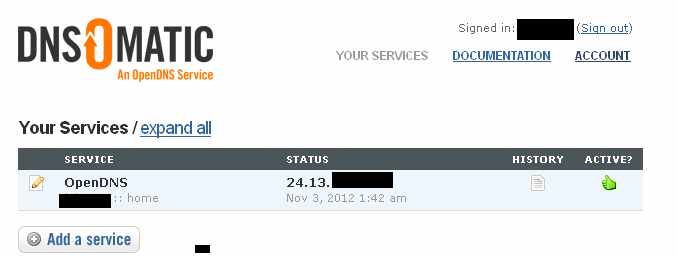+BudMan MVC Posted November 13, 2012 MVC Share Posted November 13, 2012 oh my bad, I read ddclient as dhclient ;) Sure you can use ddclient on a linux box on your network to update opendns. But why not just use one of your windows box - much simpler!! http://www.opendns.c...ort/article/101 Are you currentlly using dnsomatic? I believe you can use that to update opendns, so you would not need ddclient running on a linux box on your network. Like I said lets get it working - then you can worry about updating your dynamic IP.. Just refrain from rebooting your router for a few minutes so your IP doesn't change ;) You can always update your IP via their website on opendns if need be. edit: If your router supports dnsomatic, or you update it with ddclient or windows client, script, etc.. It can auto update opendns for you - no need to point ddclient to opendns, or run opendns client on windows box in your network, etc Link to comment Share on other sites More sharing options...