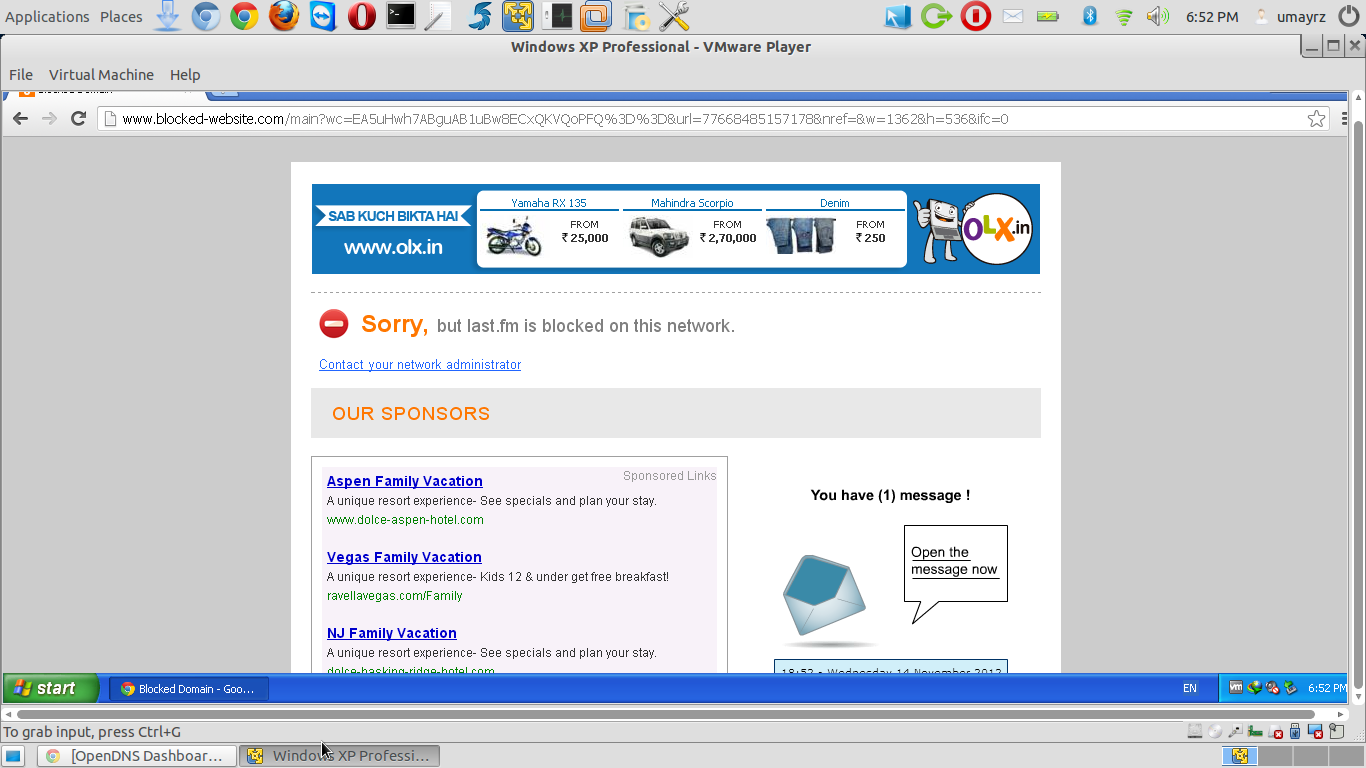 Koshur Posted November 14, 2012 Author Share Posted November 14, 2012 oh my bad, I read ddclient as dhclient ;) Sure you can use ddclient on a linux box on your network to update opendns. But why not just use one of your windows box - much simpler!! http://www.opendns.c...ort/article/101 Are you currentlly using dnsomatic? I believe you can use that to update opendns, so you would not need ddclient running on a linux box on your network. Like I said lets get it working - then you can worry about updating your dynamic IP.. Just refrain from rebooting your router for a few minutes so your IP doesn't change ;) You can always update your IP via their website on opendns if need be. edit: If your router supports dnsomatic, or you update it with ddclient or windows client, script, etc.. It can auto update opendns for you - no need to point ddclient to opendns, or run opendns client on windows box in your network, etc Ok. going with the dnsomatic this time. Ive skipped ddclient for now. I am assuming the dsnomatic would do the job of ddclient. Here is what ive setup now. 1- 208.67.222.222 and 208.67.220.220 as my DNS servers on routers page 2- Added network as "Home" on opendns 3- Synced my Opendns account with Dnsomatic here: 4- Blocked last.fm on content filtering 5 - Here is what my Linux box see as DNS servers in connection information (I am connected on wifi and not LAN) After all this i rebooted the my linux client and tried to access the blocked site "last.fm". And i can still access it. :(( NOW here is the funny part. Again its working on my win machines. I checked it within the VMware (win xp) which is in a bridged mode on this very linux machine. !!. This thing is really annonying me. Dont know what i am missing..loosing my kool on this one... :/ If you are using windows, OpenDNS offers a program for those who have dynamic IP address's, you can download it here All good on win clients but not on linux. Link to comment Share on other sites More sharing options...
