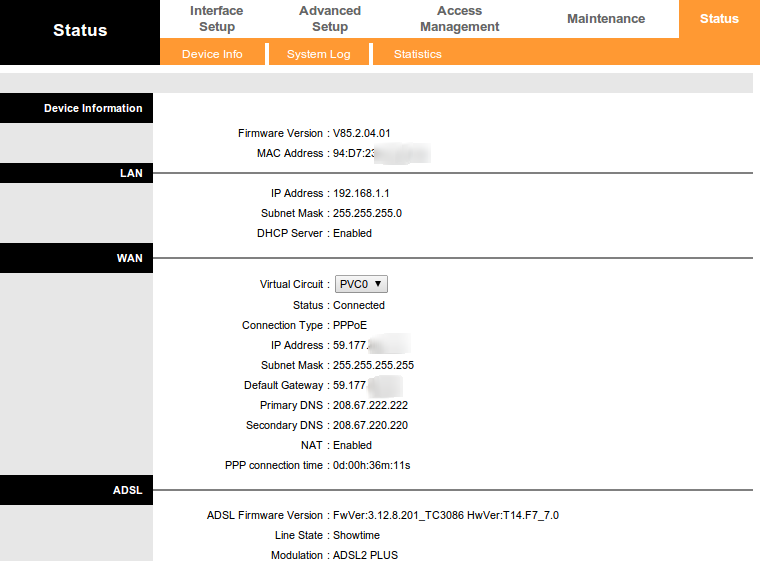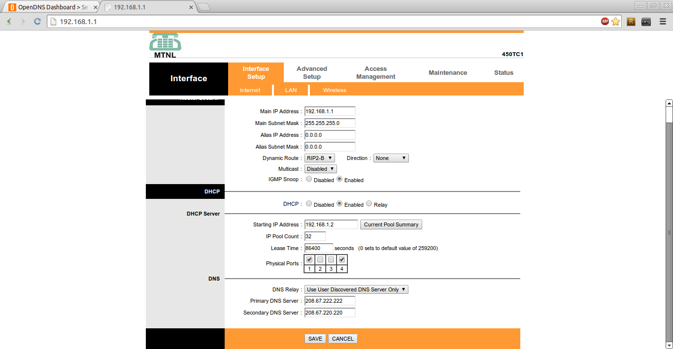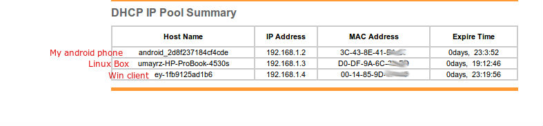 Koshur Posted November 15, 2012 Author Share Posted November 15, 2012 Just checked the ipconfig/all on my Desktop on the LAN (win client). Filtering woks well by the way.. last.fm is being successfully blocked on this one. Here is what it shows: Ethernet adapter Local Area Connection: Connection-specific DNS Suffix . : Description . . . . . . . . . . . : Marvell Yukon 88E8001/8003/8010 PCIGigabit Ethernet Controller Physical Address. . . . . . . . . : 00-14-85-9D-1D-45 Dhcp Enabled. . . . . . . . . . . : Yes Autoconfiguration Enabled . . . . : Yes IP Address. . . . . . . . . . . . : 192.168.1.4 Subnet Mask . . . . . . . . . . . : 255.255.255.0 Default Gateway . . . . . . . . . : 192.168.1.1 DHCP Server . . . . . . . . . . . : 192.168.1.1 DNS Servers . . . . . . . . . . . : 208.67.222.222 208.67.220.220 Lease Obtained. . . . . . . . . . : Thursday, November 15, 2012 10:16:08 PM Lease Expires . . . . . . . . . . : Friday, November 16, 2012 10:16:08 PM[/CODE] My default gateway and DHCP server are both showing same value. Is that ok? Here is what my router shows on:- WAN setting page LAN side: DHCP pool summary [color=#282828]I thought your router was suppose to be handing out opendns? Doesn't seem to be doing that either[/color] My router only support Dyndns. I can try switching to that. However, currently with Open DNS, i though putting the DNS servers manually on the LAN side and syncing it on dsnomatic was what was needed. Although i do ran that IP updater URL but the status on dnsomatic still shows "waiting for update". The IP has changed by the way.. Sorry.. i am being a little too messed up here but this **** is driving me nuts and I am not the form the patient fellas. :/ Link to comment Share on other sites More sharing options...