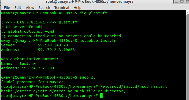 Koshur Posted November 14, 2012 Author Share Posted November 14, 2012 (edited) from your linux box do a ping of last.fm what does it reply?? If the correct IP, then is it cached? Do a dig +trace to see where its getting dns from. Do the simple test I did with dig or nslookup Here is the output:- You were right, the culprit is the dnscache, its still getting cached from my ISP DNS servers. 59.179.243.70 I Tried to clear cache(on root prompt) using /etc/rc.d/init.d/nscd restart[/CODE] but i get the error that nscd does not exist, while i can see it in synaptic manager here: Is your linux box browser using a proxy? You sure your browser doesn't have it cached? All you have to do is simple dns query to verify if opendns block has been enabled or not. Nope.. No proxy on linux box HANG ON there... found the correct command to flush dns cache. Flushed the cache and ran a dig on last.fm. Here is the output this time: What could be going wrong now. ? Edited November 14, 2012 by Koshur Link to comment Share on other sites More sharing options...