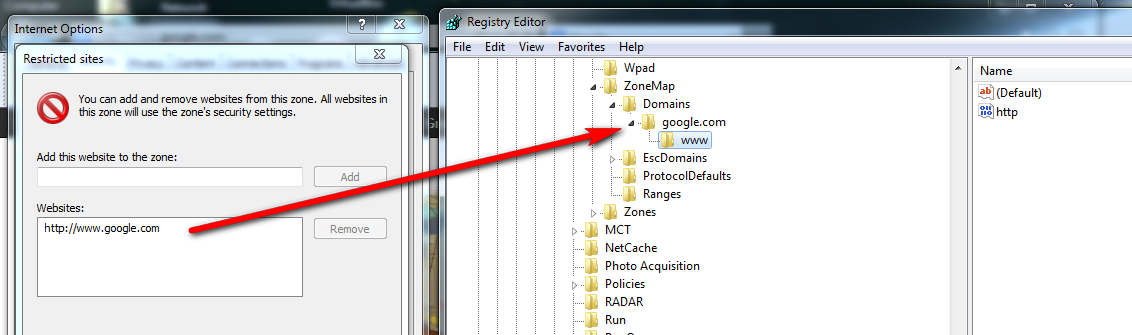 +BudMan MVC Posted November 22, 2012 MVC Share Posted November 22, 2012 all of the settings for different domains should be in your zonemap key - just export and then import it back HKEY_CURRENT_USER\Software\Microsoft\Windows\CurrentVersion\Internet Settings\ZoneMap I don't use IE normally, but just added google to restricted, and there you go it is listed in the zonemap I don't see why this would of changed in win8 Link to comment Share on other sites More sharing options...
