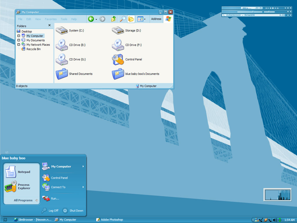 blue baby boo Posted November 17, 2003 Share Posted November 17, 2003 VS: Personal Mod of Reluna Wall: Brookly Bridge Vector Icons: iCandy Winamp: Mod of Reluna Dumeter Link to comment Share on other sites More sharing options...