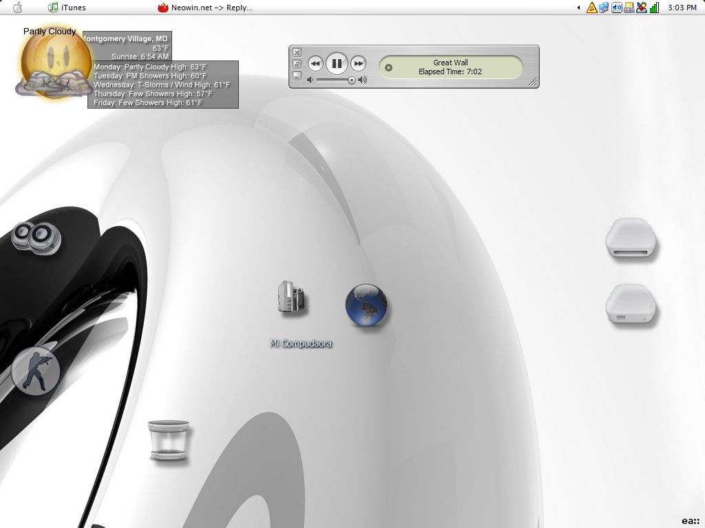 RadishTM Veteran Posted November 17, 2003 Veteran Share Posted November 17, 2003 Still using Watercolor :happy: .... VS - Binary's Watercolor Lite Olive .... Wallpaper - Created by me .... Y'z Dock Skin - Created by me .... Link to comment Share on other sites More sharing options...
