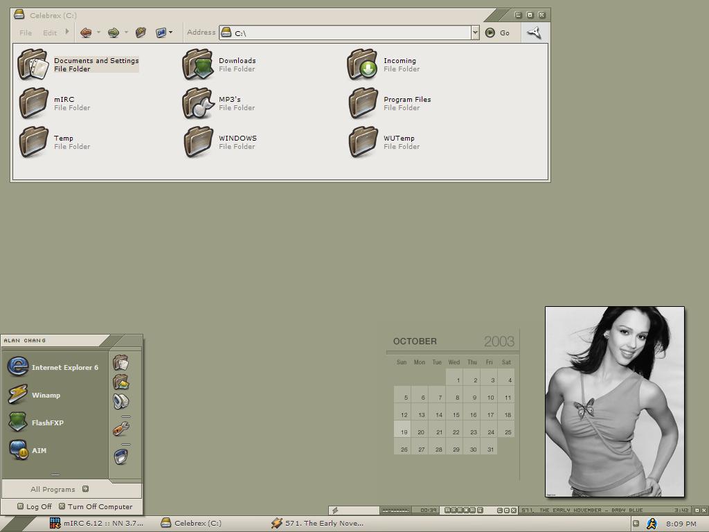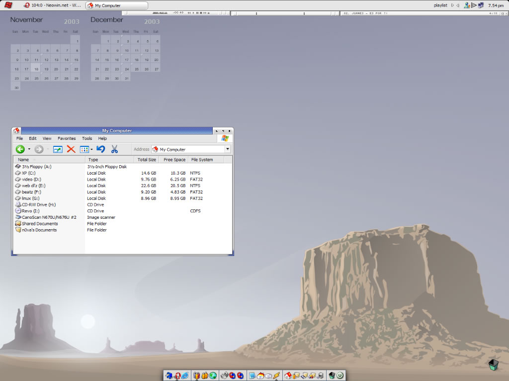 htimsneb Posted November 18, 2003 Share Posted November 18, 2003 This is my first time posing my desktop. I keep my task bar "Auto-hidden" so that is why its not in the image. The YzDock is set to auto-hide as well which why its kind of messy on the right side. Hope you like. Using GANT icons, a desktop from somewhere I can't remember (I apologize), Yz dock and toolbar, rainlendar, etc. Most everything you've probably seen by now. Ben Click here for a BIGGER one! Link to comment Share on other sites More sharing options...