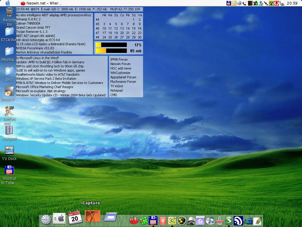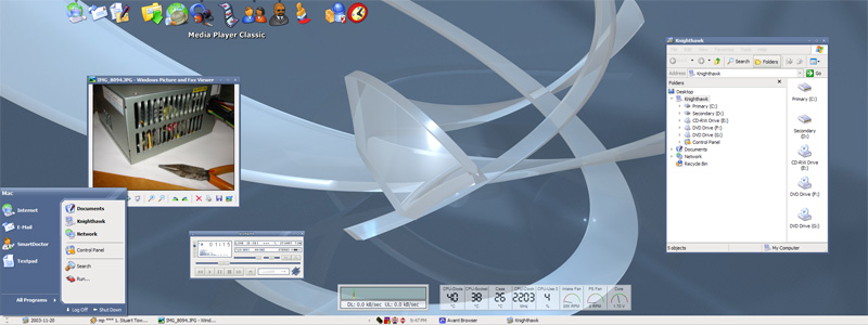 KTamas Posted November 20, 2003 Share Posted November 20, 2003 Changed back 2 Mac OSX :) Using: VS:WindowsX's OSX theme Wall:Aqua Grass (it was in Longhorn TransPack 4.0) Icons:dunno, found somewhere Programs: Samurize 1.0 w/my script Y'z dock 0.8.3 (Changed from ObjectDock....I luv Y'z dock better, its soooo better than ObjectDock) PM me for nething xcept my samurize script, i dont wanna publish....yet :) Link to comment Share on other sites More sharing options...