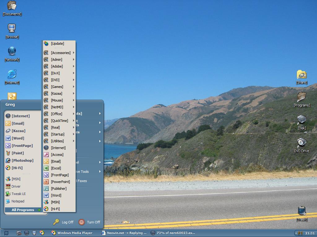 Zip Posted November 20, 2003 Share Posted November 20, 2003 my second november desktop. i switched to reluna and the gant icon set (as everyone seems to have - all i ever wanted to be was a sheep). Wallpaper is again my own picture taken on the pacific coast highway, CA. Link to comment Share on other sites More sharing options...