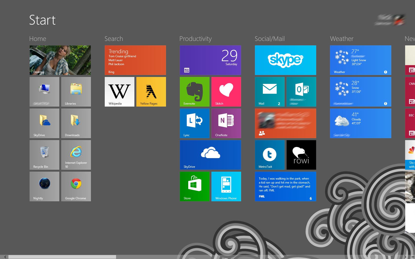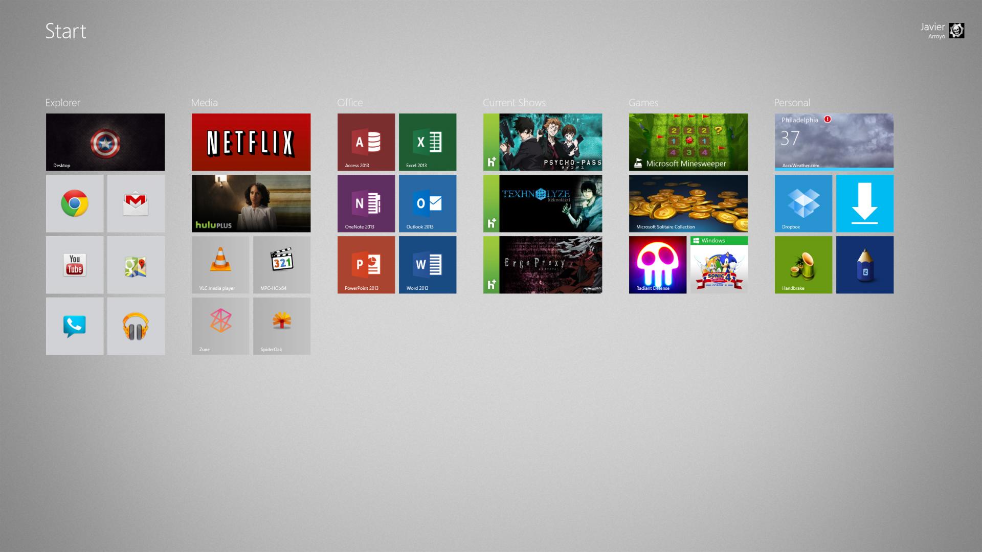 +Peewee210 Subscriber¹ Posted December 25, 2012 Subscriber¹ Share Posted December 25, 2012 Took a looooonnggg time to get this right. Done working on my start screen! I'm slightly new to Windows 8. Can you tell me how you've got the neat Chrome, Gmail and Youtube tiles please? Link to comment Share on other sites More sharing options...