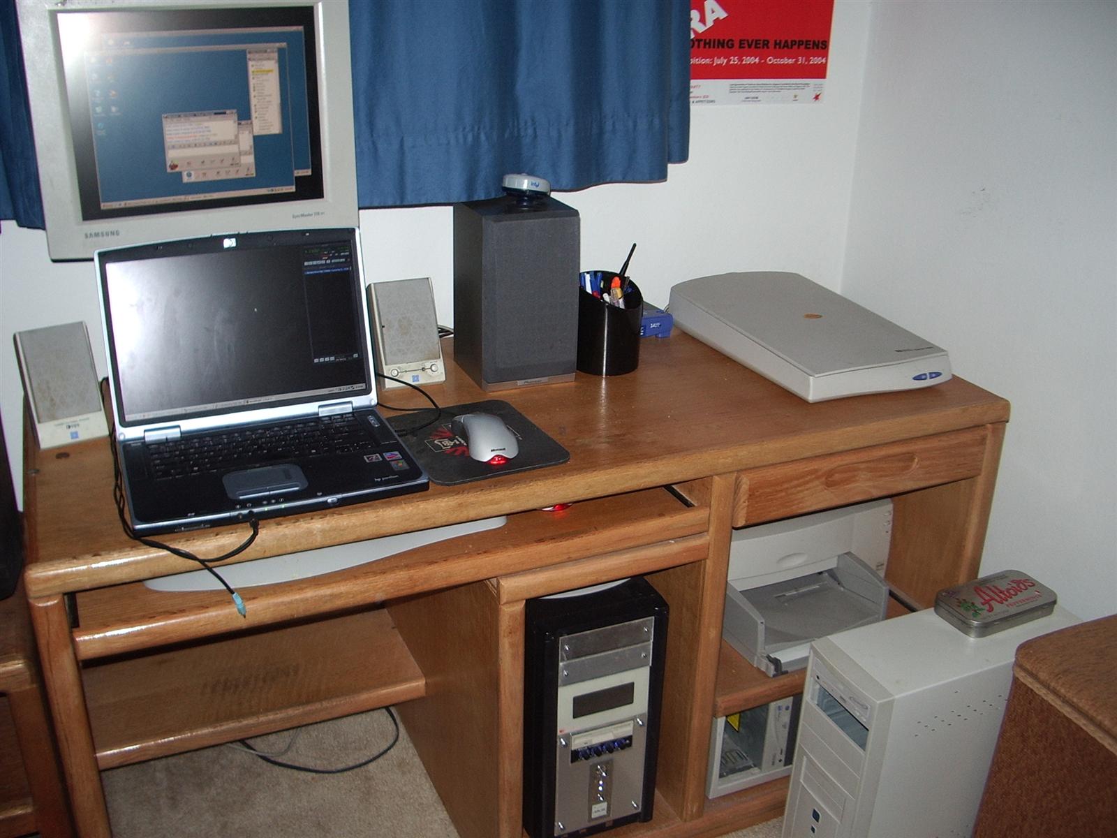 Dacracka Posted January 9, 2005 Share Posted January 9, 2005 ok, here is my scary desk area... Cord management is lacking right now, but I just moved it into the bedroom... Sorry about the bad resolution, older 2.1MP camera, its gonna replaced soon, the wife wants something to take better photos with. :) 585258120[/snapback] Look on page 436. I'm using the same desk :) Link to comment Share on other sites More sharing options...