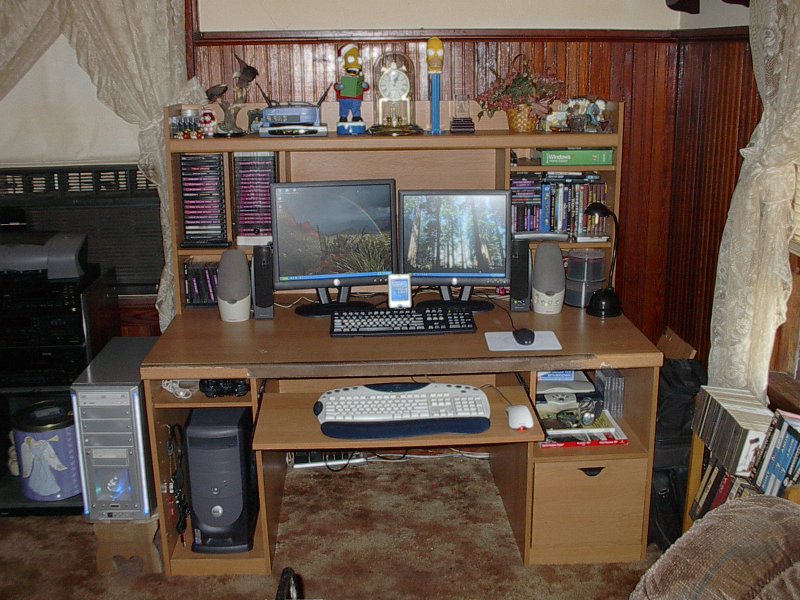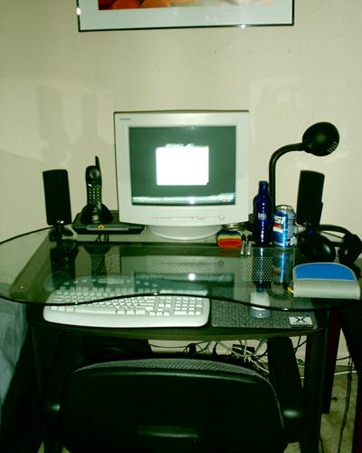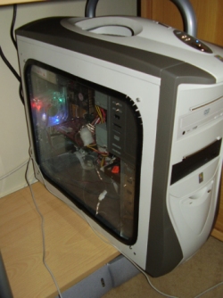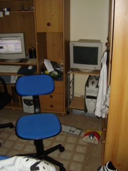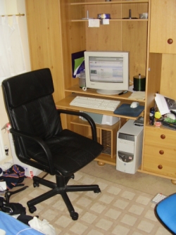 Sensayshun Posted April 19, 2005 Share Posted April 19, 2005 I only did the side panel today, and I've just done a big clean today as well. You won't get my room neater than this: View from my door, That's my computer on the right and the internet box on the left. That corner with the desk with the monitor and the computer is the only part of my room which is really mine, as mines the computer room everyone else uses my bed as a seat and the entire room as their own. The internet box with my dad's nice leather seat (I'm on it right now). And before anyone shouts anything those things on the top shelf are CD spindles not one some others would immediately think. And the two bits of paper: ones contact details of the local pc store the other is a scribbled note saying 'No place like 127.0.0.1'. Witty. My rig, with the new side panel. Did it all myself, check out the overclocking and pc modding section on the post your Case mod lighting pics section. Page 34 is me. I've tidied up all the cables as best I can and just under the desk you can see my cunningly hidden speakers. 2 horrible satellite speakers. The two wires coming to the front are keyboard and mouse which I'll show you how annoying they get in the next photo. As you can see the wires aren't too long, before my brother went to uni (so I could steal his chair) I had to lie on the floor with my head propped up on my bin with my legs all scrunched up, the keyboard in my lap at a 89degree angle and my mouse hand constantly keeping it from falling over. The mouse also doesn't work, it's extremely bad. Getting a wireless set ASAP. The chair has made a big difference but now I have to balance my mouse and mousemat on the edge of my knees and they keep falling off, I've still got kayboard and mouse in my lap. Wireless will soon have me lying on my bed playing doom3 properly though :) All in all not the best setup but until I'm older and can have my own place, job etc. all that, I'll have to live with it, and I'm proud :yes: Link to comment Share on other sites More sharing options...