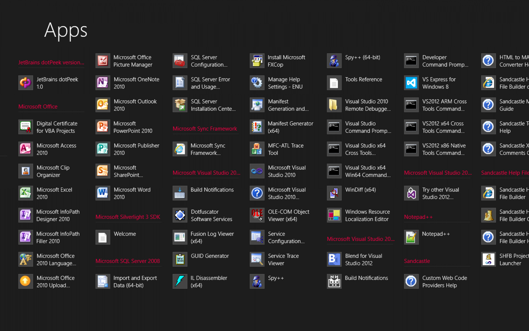 The All Apps view is akin to how some people have their Desktops setup, but lacks basic functions such as folders, multiple selections and a context menu that doesn't require moving my eyes and the mouse cursor away for the thing I'm working with.