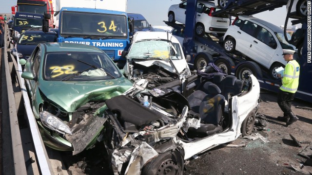 Hum Posted September 7, 2013 Share Posted September 7, 2013 London (CNN) -- At least 100 vehicles smashed into each other in a massive pile-up Thursday in England's southeastern county of Kent, police said, injuring eight people seriously and leaving dozens with minor injuries.The huge chain-reaction crash took place on a multi-lane bridge and highway that connects the Isle of Sheppey with mainland Kent, reportedly amid thick fog.Video from the scene showed scores of abandoned cars and trucks, many crumpled from impacts with other vehicles. Motorists, some injured, sat on the roadside as they awaited help.More than 30 people were taken to the hospital, the local ambulance service said. In all, about 200 people received care for minor injuries or were given medical advice at the scene, it said.The Sheppey Crossing, on the A249 road, has been closed to traffic in both directions, Kent Police said. Several hours after the pile-up, the South East Coast Ambulance Service said many people were unable to leave the bridge because of the wrecked vehicles and were struggling with the heat on an unusually warm September day. more Link to comment Share on other sites More sharing options...