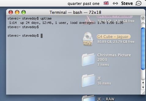 Fusion Posted November 22, 2003 Share Posted November 22, 2003 You will learn in time that turning off or rebooting a Mac is a VERY rare thing. I think my uptime on my powerbook right now is around 4 or 5 weeks. I don't keep track and I don't care about uptime, I would reboot if I needed to, but in that amount of time I have not come across the need. I think last time I had to reboot was a software update from Apple.Sleep mode on Macs is very advanced and works like a charm. Especially with laptops, but also on towers and iMacs. There was just a security update that required a reboot. Did you pick that up yet? nope, I usually just do all my software updates at one time like on sunday or something. Link to comment Share on other sites More sharing options...