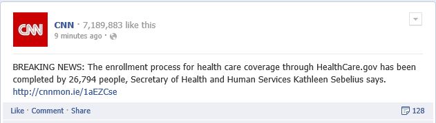 CNN Breaking: Only 26,794 people completed enrollment through healthcare.gov