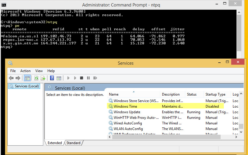 "I tried to run w32tm to get the diagnostic information, and it immediately closes upon running"