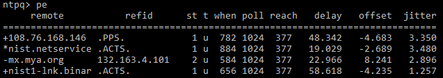 150919 02:47:22.5803950s -   Peer (special) now pending: <Name:time.nist.gov,0x9 (ntp.m|0x9|0.0.0.0:123->165.193.126.229:123) poll:604800 diff:940 last:130394107016563704 resync?:FALSE>