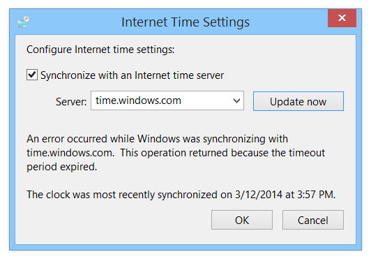 And yes, when I try to synch the time with the time server (And I've tried several), I get the error message below: