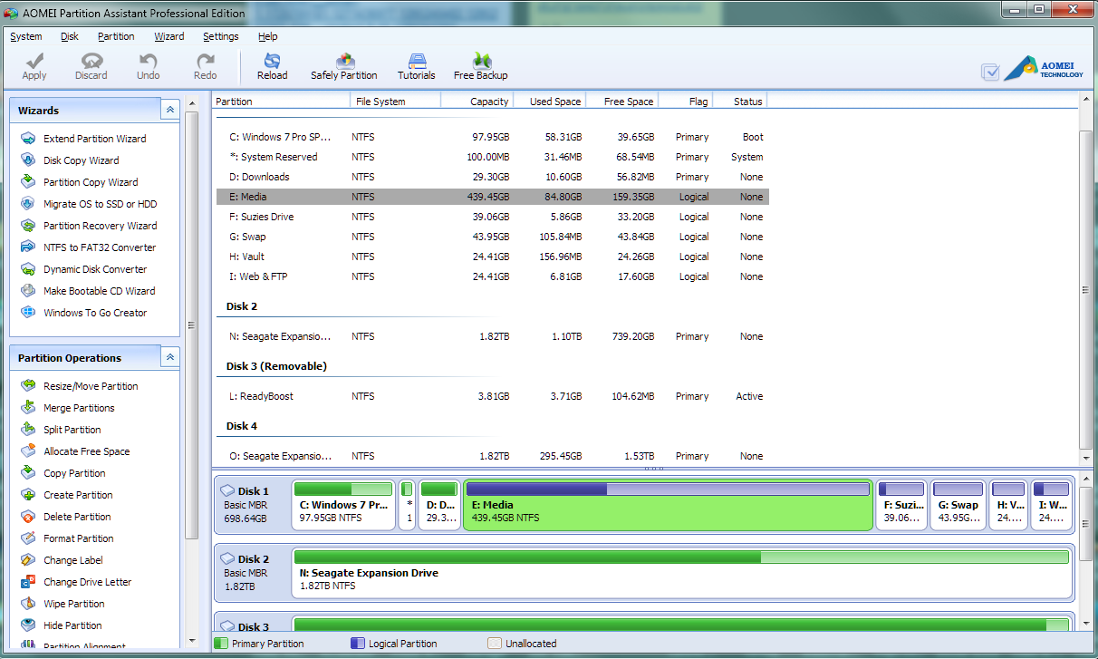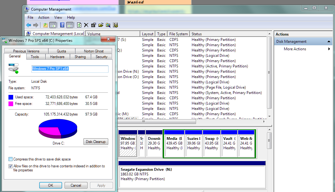 leesmithg Posted April 19, 2014 Author Share Posted April 19, 2014 Hum the details are in the images. D: is missing 20g.b and E: 206 gb I resized both of them in the disk management, hoping to add free space to C: didn't work out so I recovered the free space back to their respective drives as you can see in disk management, then in my computer, not displayed correctly. I have two partition resizing softwares EaseUs technician 10 & AOMEI Partition Assistant Pro v5.5, EaseUs fails within 10 seconds AOEMI works for one hour and I am thinking it's going to do the job then fails. AOMEI Partition Assistant shows it correct as does EaseUs (didn't want another image here). With C: there should be near 40g.b. of free space, however I think Rollback RX is using that,b.t.w. I also use ghost along side RX, as a secondary backup. As for backups do it it twice a day with ghost, all drives, whence the two portable u.s.b. Seagate h.d.d. 2.t.b. each. Link to comment Share on other sites More sharing options...
