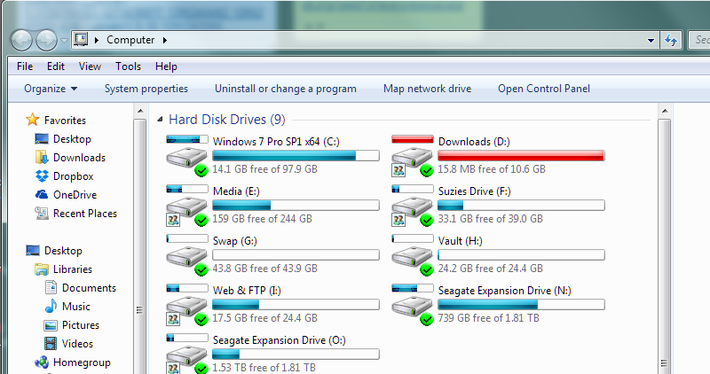 Hum Posted April 19, 2014 Share Posted April 19, 2014 Holy Moses -- what a mess. You do realize that hard and SD drives reserve a certain amount of operating space that you can not use. How many partitions do you have on each physical drive ... ? Primary partition and logical drives are 2 different things. But the free space given looks about right to me. I can only guess to 'fix' the amounts, is to disconnect all but the OS drive, then reconnect them one-by-one -- doing a reboot each time. Someone may have a better idea tho. I want to use my partitioning program to resize. You'd better be backing-up files like crazy before changing partition sizes -- in case of fubar. Link to comment Share on other sites More sharing options...
