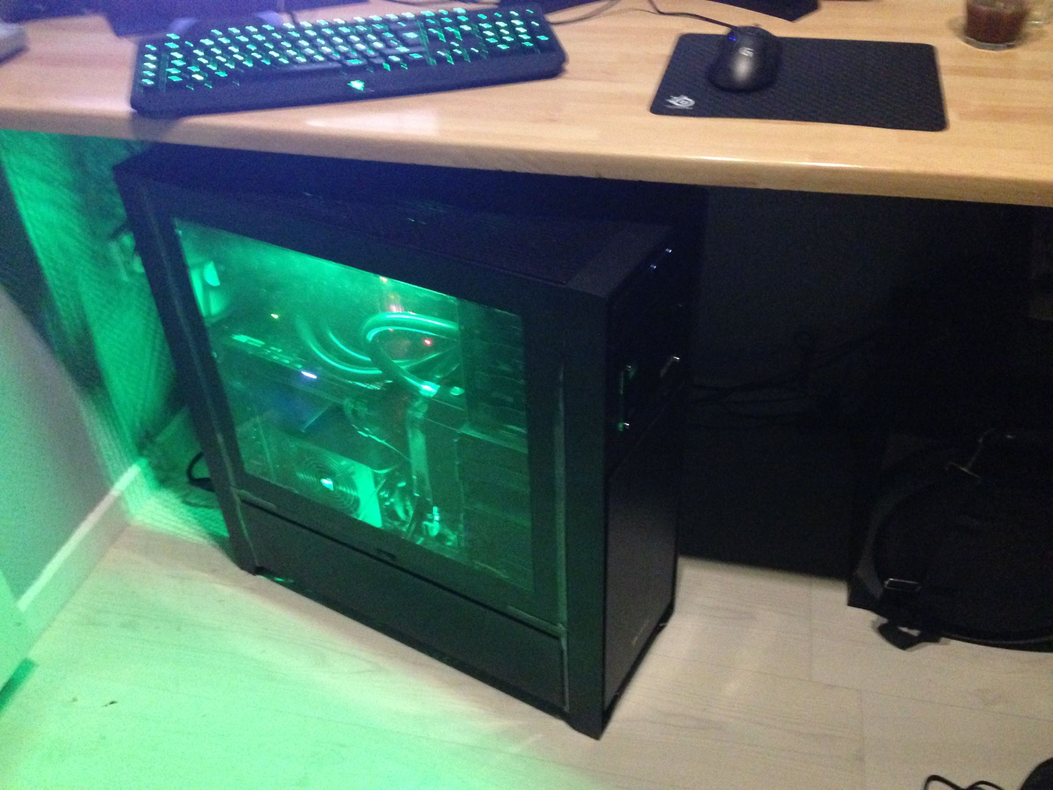 Mysterioux Posted July 4, 2014 Author Share Posted July 4, 2014 To those who may be wondering what i upgraded to... Core I7 3960xEvga X79 DarkEvga GTX 780 TI ClassfieldTeamGroup Xtreem LV 16GB 2600MhzKingston Hyberx 2x120GB Raid 0 (OS)Kingston HyberX 2x240GB Raid 0 (Games)Corsair Professional Series Gold AX1200Corsair D9002x 360 Radiator1x 140 tyk RadiatorNoctua NF on all Radiators "Push-Pull-Swiftech MCP655 (Laing D5) PumpeXSPC X2O 750 Dual Bay Reservoir Pump V4 And here is the monster :D Link to comment Share on other sites More sharing options...