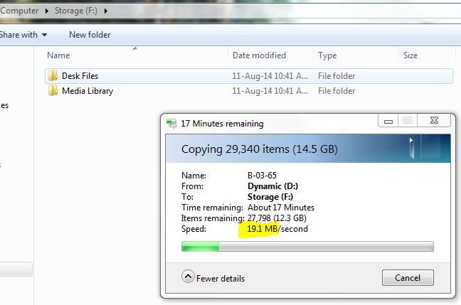 +BudMan MVC Posted August 11, 2014 MVC Share Posted August 11, 2014 If they call for specs of up to 22.. And your seeing 19 when your doing a copy of lots of files vs just 1 large file I would say your rocking. What kind of speed do you get when just doing write of 1 larger file? Link to comment Share on other sites More sharing options...