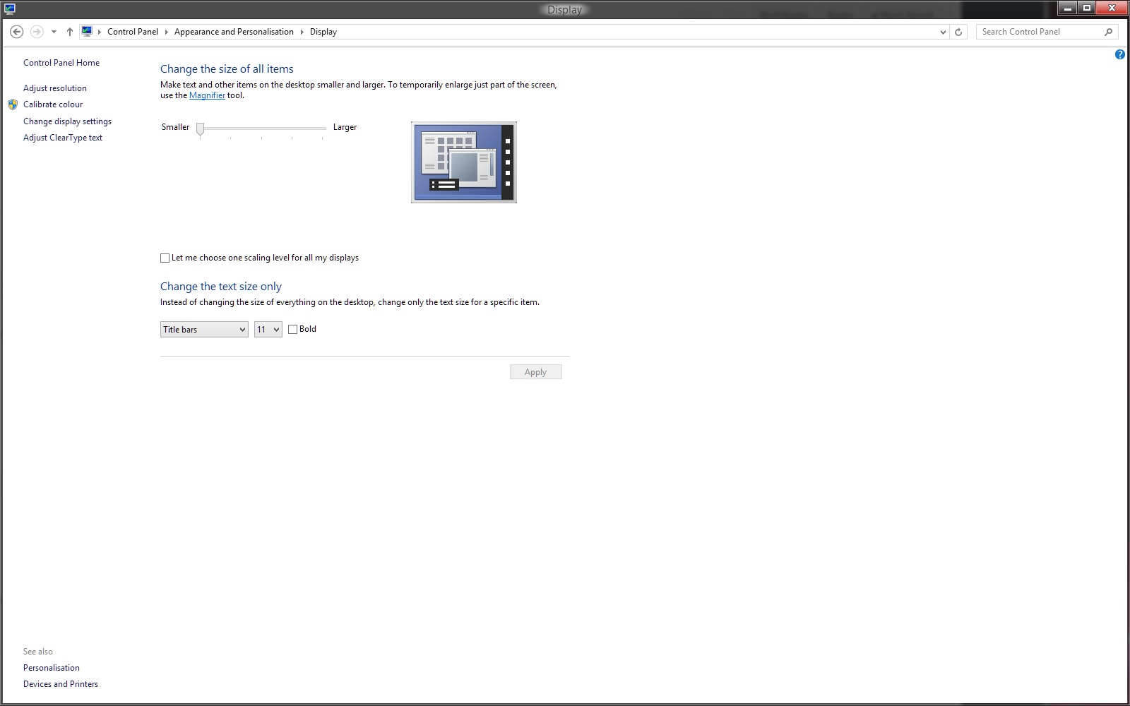 McKay Posted September 2, 2014 Author Share Posted September 2, 2014 Did you know you can adjust the global DPI in Windows so everything doesn't look tiny, or do you really want everything to be as small as possible? Hell, I can't stand the default DPI on a 28" even at 1080p. (Even less so on smaller screens of course). That slider makes all the Windows bigger. You can also change the font in areas of the UI to be bigger. I had to change the font in the right click menu to 12 to even be able to see it. Link to comment Share on other sites More sharing options...