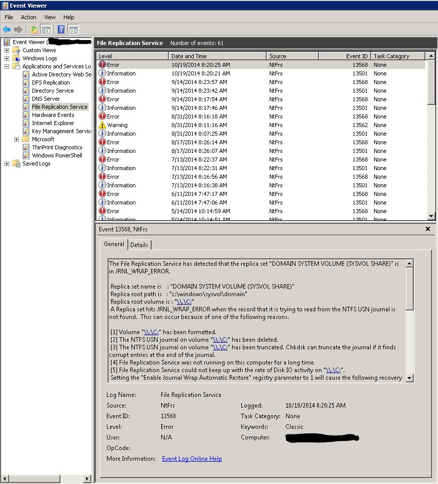 Jason S. Global Moderator Posted November 13, 2014 Author Global Moderator Share Posted November 13, 2014 look at your dfs replication, directory service, and dns server for any failures there as well. yeah there's a mess of errors in those as well. i'll look into the links you provided. Thanks. Link to comment Share on other sites More sharing options...