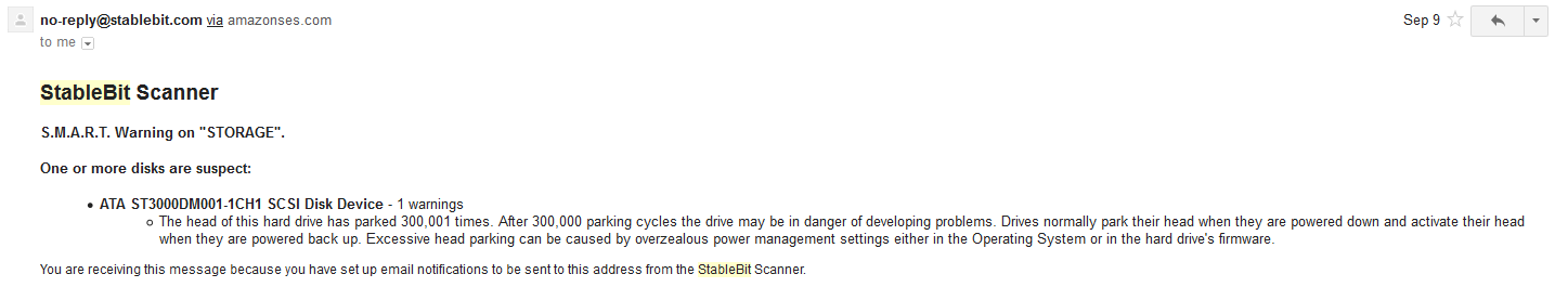 +BudMan MVC Posted November 12, 2014 MVC Share Posted November 12, 2014 I use https://stablebit.com/Scanner actually just bought another copy for my pc vs my storage box since I moved one of my backup disks to this machine and I was a bit concerned with this disk, etc. and its $15 to a company I think just rocks - Their support is nothing but fantastic.. Their current new version changed the way it reads smart, and I was having issue with my raw disk maps in esxi to my vm seeing the smart. I opened a ticket, couple of hours later had an actual response from a human, that gave me all the details I needed to get it working again - with detailed instructions, etc.. It has multiple alert features, I have it just email and text me. So I got an email like this Can do speech alerts, pushover, twitter, etc. etc.. Like a said wait til black friday or cyber money and sure you will find a good deal.. Not sure if 4TB is sweet spot for size currently to get most GB per $ Price the different sizes, 3 might be better priced per GB.. I will be getting a 2 because seems esxi and raw map disk on my n40l seem to not get along all that nice. The notification you got was for my 3TB drive I had in my pool. I could read data off it just fine but something was not right with the filesystem. Said it was full but it wasn't - was giving write errors to the log when trying to run chkdsk - so I migrated its data to other disks via a click of a button in the pool software by stablebit. Then wiped it, re did the gpt table, did a reformat -- but just couldn't get windows to see file system clean.. It passed all the tests, linux showed it fine - but any time windows touched it would show a issue with gpt in gdisk, etc. So I just took the 1TB disk I had in my PC that I used for junk files with this 3TB.. Everything shows fine on it now, smart is good, makers tests all show good - file system shows good, etc. So now just going to use it a junk and another backup of my pictures and home movies, etc. So what the hell got another copy of scanner for $15. But would rather have a bit more space free in the pool - so will pick something up here when the sales hit.. I am not looking for 4, but if I see any great deals will let you know. here is another notice I got a while back, I had this disk RMA'd it hit LCC of over 300k in like a year - and there was no firmware update. I was actual fairly impressed with the seagate support and return policy. Cost me $10 in shipping to get a replacement disk, etc. Email to support about the issue - and they at first suggested a firmware, that was not for my actual model. But after that walked me through rma process - they ship you replacement, you put the old one in a the box and attach the label they send in the box and you stop by a ups store. Easy Peasy!! Hassle free. Link to comment Share on other sites More sharing options...